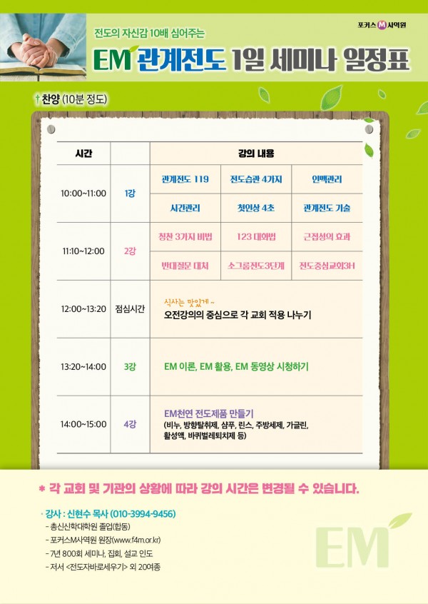 EM관계전도 1일 세미나(시간표) 페이지 정보 작성자 신현수 작성일18-08-07 13:16 조회2,528회 댓글0건 관련링크 이전글 다음글 목록 답변 본문 댓글목록 등록된 댓글이 없습니다. 이전글 다음글 목록 답변