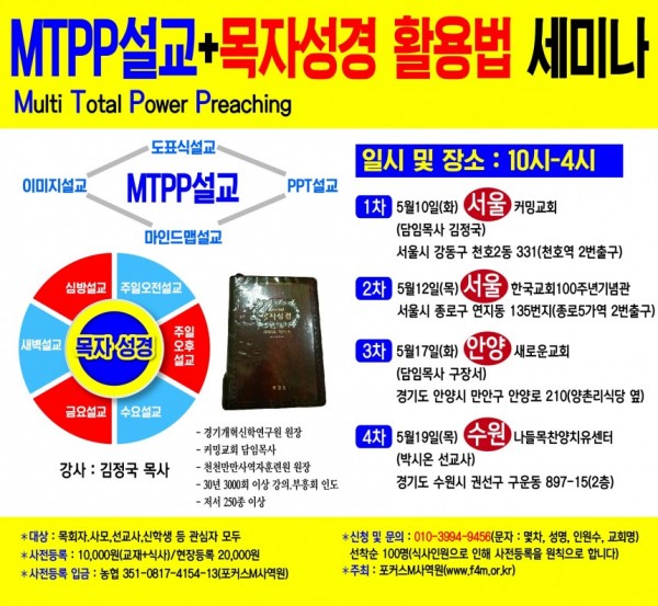 MTPP설교+목자성경 활용법 세미나(5월) 페이지 정보 작성자 관리자 작성일17-12-27 23:31 조회2,761회 댓글0건 관련링크 이전글 다음글 목록 답변 본문 MTPP설교+목자성경 활용법 세미나(5월) 댓글목록 등록된 댓글이 없습니다. 이전글 다음글 목록 답변