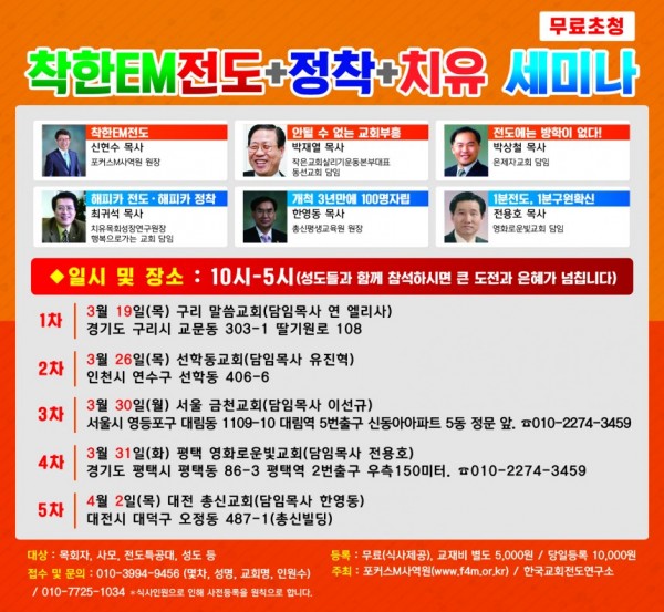 EM전도세미나(15년 3월 일정) 페이지 정보 작성자 관리자 작성일17-12-27 23:25 조회2,477회 댓글0건 관련링크 이전글 다음글 목록 답변 본문 EM전도세미나(15년 3월 일정) 댓글목록 등록된 댓글이 없습니다. 이전글 다음글 목록 답변