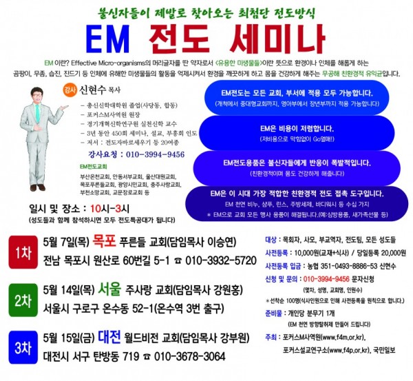 EM전도세미나(5월일정) 페이지 정보 작성자 관리자 작성일17-12-27 23:25 조회2,505회 댓글0건 관련링크 이전글 다음글 목록 답변 본문 EM전도세미나(5월일정) 댓글목록 등록된 댓글이 없습니다. 이전글 다음글 목록 답변