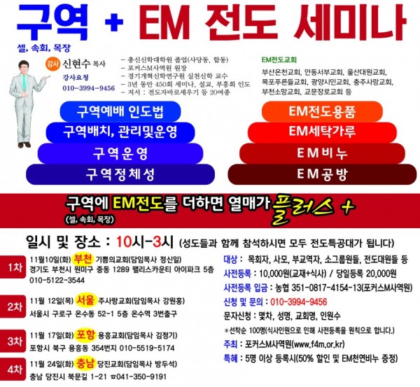 구역(속회,목장,셀)+EM전도세미나(11월 일정) 페이지 정보 작성자 관리자 작성일17-12-27 23:28 조회2,660회 댓글0건 관련링크 이전글 다음글 목록 답변 본문 구역(속회,목장,셀)+EM전도세미나(11월 일정) 댓글목록 등록된 댓글이 없습니다. 이전글 다음글 목록 답변